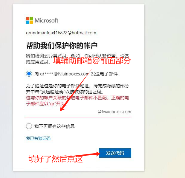 fviainboxes.com这边:注意图片上的字只是列子,不要照抄图片上的邮箱,按照购买的账号信息里面的辅助邮箱填写
